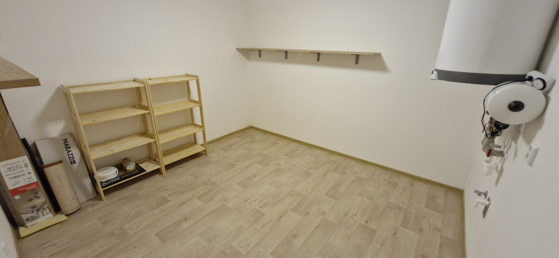 Velkým benefitem jsou nadstandardní úložné prostory mimo byt – šatna a technická místnost o celkové výměře 22 m² na patře (jednu místnost lze využít i jako pracovnu, posilovnu či příležitostné přespání). Byt je dále vybaven podlahovým elektrickým vytápěním, vlastním bojlerem, řízeným větráním a ovládáním teploty přes mobilní aplikaci. Energetická třída B.